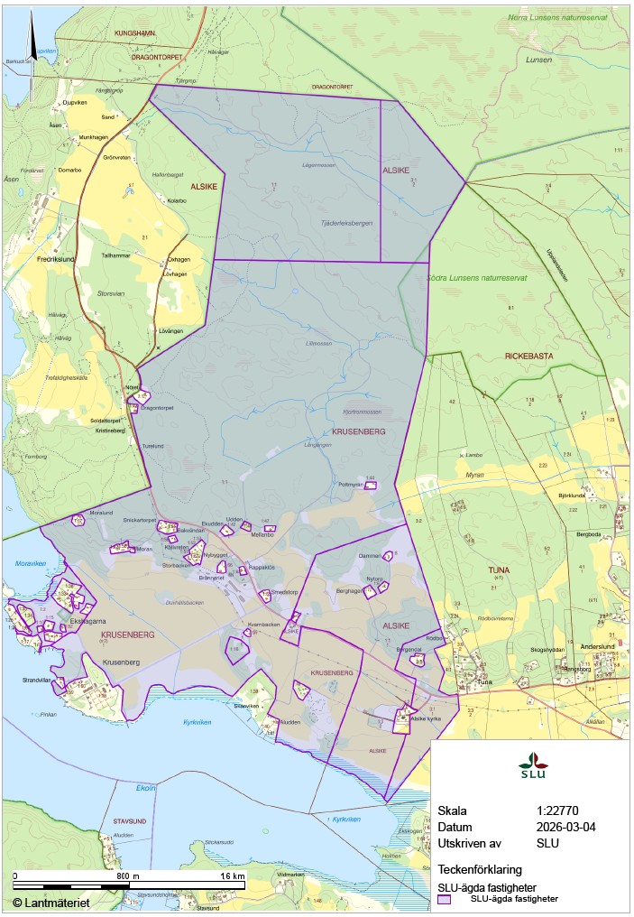 Marken ägs av SLU och förvaltas av Egendomsavdelningen, huvudsakligen som resurs för forskning och utbildning, och ska därför anpassas utifrån dessa verksamheters behov.