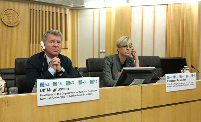 The event Low use of antimicrobials and healthy productive animals – a possible equation? was organized as a side-event at the UN Global Committee for Food Security, CFS43, on the 19 October. The event showcased why one cannot justify the non-rational use of antimicrobials (AM) in the livestock production and that there are ways to reduce the use of AM in the sector and maintain healthy and productive animals. For such a change, regulations and policies are not sufficient; instead animal health management alternatives must be provided.