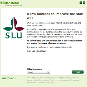 From 19 October and 3-4 weeks forward, a web-based survey will be conducted on how the staff web works and is experienced by SLU employees.