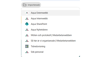 För att göra det ännu smidigare för dig att snabbt hitta rätt bland SLU Aquas interna kanaler och lagringsytor med mera finns det nu färdiga bokmärken (genvägar) att importera direkt till din