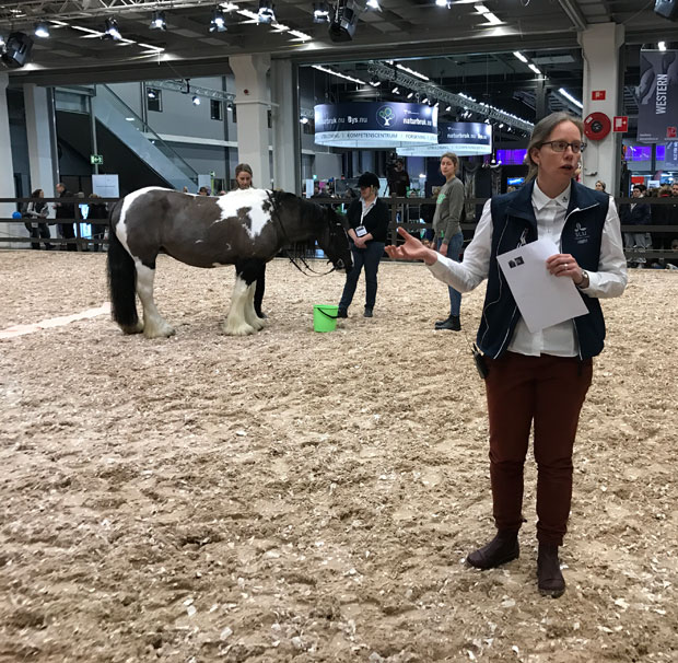 I paddocken på Eurohorse håller SLU och SH förevisningar och diskuterar hästträning med fokus på praktik och vetenskap.