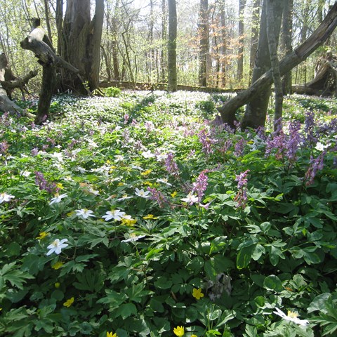 Vildsvin påverkar skogsvegetationen genom att böka marken när de söker föda. Mellan 2011 and 2013 blev nästan 80 % av provytorna i Dalby Söderskogs nationalpark i Skåne bökade. Medeltäckningen av vårblommorna minskade med en tredjedel. Minskning av täckningsgraden skedde endast i bökade ytor. Söderskogen har länge varit ett populärt utflyktsmål under våren när besökarna kunde njuta av den praktfulla vårfloran. En reducering av vildsvinsstammen kan bli nödvändig om man vill behålla denna flora i artrika lövskogsområden.