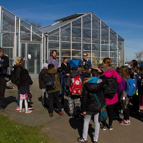 Det är första måndagen i maj, med värme och sol. Ett fyrtiotal tvåor från Stenkulaskolan är på väg till Sveriges Lantbruksuniversitet i Alnarp. Eleverna ska få se sina egna plantor som just nu håller på att växa till sig i ett växthus. Den 30 maj kommer plantorna vara klara att sättas på Stenkulaskolan.