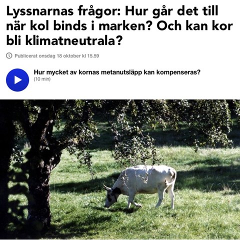 En lyssnarfråga skickades till Vetenskapsradions program Klotet. Lyssnaren har reagerat på en artikel där det hävdas att betande kor binder kol till marken. Hur går det egentligen till? Och kan kor verkligen binda så mycket kol i marken att de kompenserar för de klimatgaser de kompenserar? undrar han.
