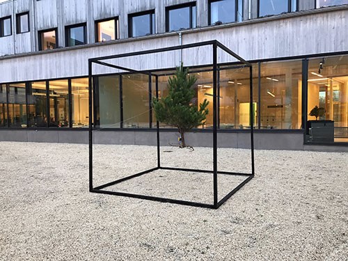 – När vi började projektet tänkte vi inte att slutresultatet skulle bli så här. Det har varit en spännande process att ta sig igenom, säger student Sofia Hane om tallen som tycks sväva ovanför marken.