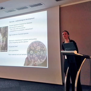 Flera olika pågående projekt undersöker möjligheten att använda biologisk bekämpning för att minska angrepp och toxinproduktion. Hanna Friberg presenterade forskning från SLU om nya metoder för att studera skadesvamparna och en studie om vilka faktorer som påverkar svamparnas utveckling. Resultaten kom huvudsakligen från Ida Karlssons doktorsavhandling.