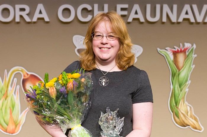 Naturvårdspriset delades ut idag, den 5 april, vid en ceremoni på SLU i Uppsala. Kajsa gör en enastående insats för att sprida kunskap om småkryp och natur.