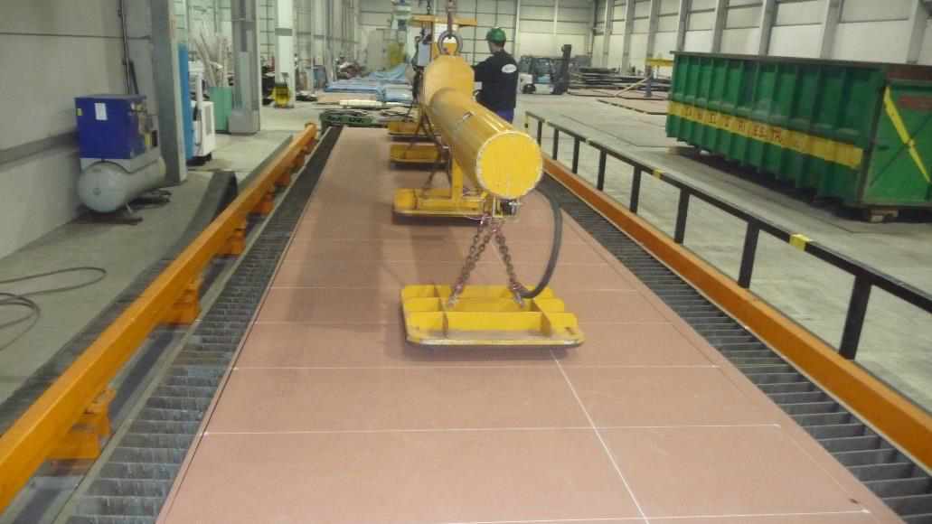 Stålet skärs i stora plasmaskärmaskiner. Huvuddelen av detta arbete görs under vatten i en bassäng för att undvika att böja och få in spänning i stålbitarna.