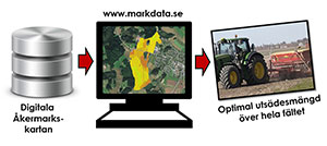 På markdata.se kan du se vilka förhållanden som råder på dina åkrar och göra de beräkningar som sedan överförs till traktorns GPS. Resultatet blir en exakt styrning av såmaskin eller spridare. Man kan till exempel öka utsädesmängden på leriga delar av fältet där grobarheten ofta är sämre och få en jämn och bra gröda överallt.