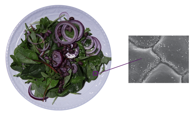 Studien har undersökt bakterien E. coli O157:H7 på ytan av bladgrönsaker och i vilken omfattning den förmår att krypa in och gömma sig i bladvävnaden.