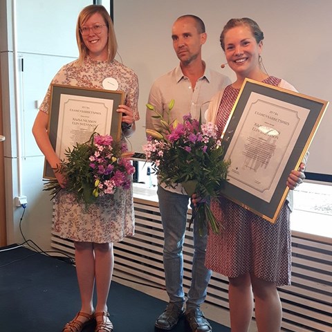 Landskapsarkitekterna Kajsa Nilsson och Elin Svensson tilldelas Föreningen Sveriges Stadsträdgårdsmästares examensarbetspris 2017 för arbetet Framgångsrik parkförvaltning – inspirerande vägledning från små kommuner med stora ambitioner.