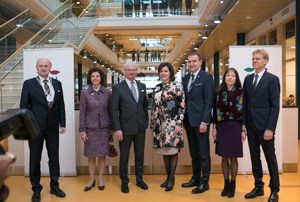 Rektor Peter Högberg – som nyligen förärats den isländska falkorden – tog, tillsammans med landshövding Göran Enander, emot gästerna i VHC, där de sedan fick höra två SLU-presentationer.