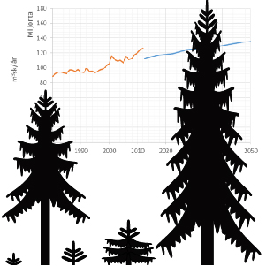 I SKA 15 redovisades ett antal scenarier över skogens framtida utveckling. Det är naturligtvis viktigt att den simulerade framtida tillväxten någorlunda väl kan länkas ihop med den uppmätta historiska tillväxten och därför gjordes en sådan jämförelse i temaavsnittet i Riksskogstaxeringens (RT) publikation Skogsdata år 2016. Scenariot "Dagens skogsbruk 90% avverkning" motsvarade bäst den historiska utvecklingen när det gäller avverkningsnivå, skogsskötsel etc. och användes därför vid jämförelsen.