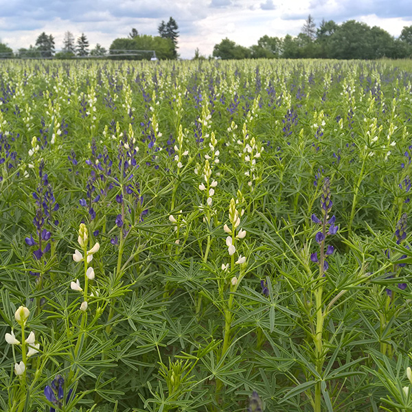 Forskarna ska odla blålupin (Lupinus angustifolius), den hittas då och då utanför fälten där den odlas, men är inte invasiv och snabbspridd på samma sätt som blomsterlupinen (Lupinus polyphyllus).