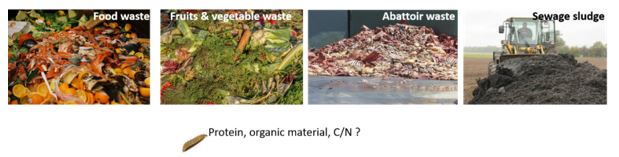 Vi jämförde processeffektiviteten av nio olika substrat och två kontrollsubstrat och jämförde sedan effektiveten med substrategenskaper, såsom proteininnehåll och C / N-förhållande.