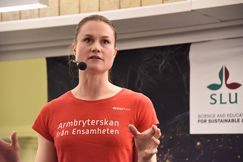 Skogsägaren, VM-mästaren och hedersdoktorn vid SLU:s skogsfakultet Heidi Andersson besökte SLU i Umeå den 30 november. Hon visade hur pärgrävarmentaliteten kan användas för att bli en planetskötare i världsklass.