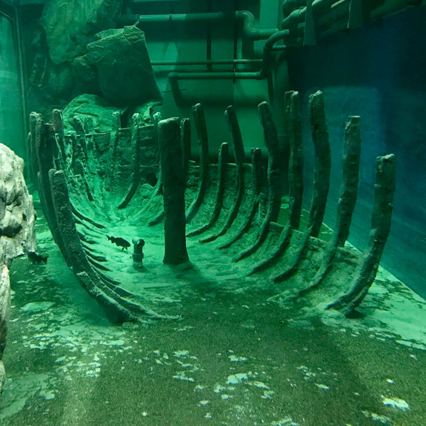 Det första som möter besökaren är de stora akvarierna med arter som finns i Östersjön, men som sällan visas upp. Här får till exempel den vackra sillen glänsa på första parkett. SLU har samlat in en stor del av fisken i akvarierna och står även bakom fiskillustrationerna.