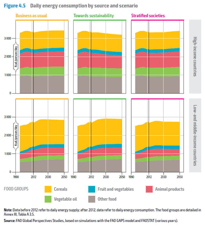 [1] Tidigare FAO-rapporter på temat livsmedelsförsörjningen till 2050 innehöll endast ett scenario om den förutspådda utvecklingen inom jordbruket.