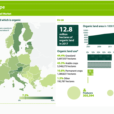Uppdaterad infografik över ekologisk produktion och konsumtion i Europa