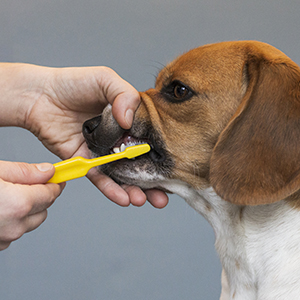 Tandborstning på hund. Foto: Peter Rutherhagen