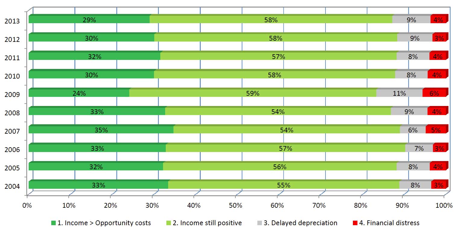 Share of farms by economic situation, EU, 2004-2013. Source: DG AGRI, Farm Accountancy Data Network (FADN)
