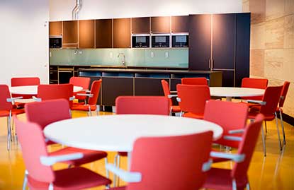 I lunchrummena finns mikrovågsugnar för värmning av medhavd mat, kylar att förvara maten i samt diskfaciliteter. Porslin och bestick finns också tillgängligt.
