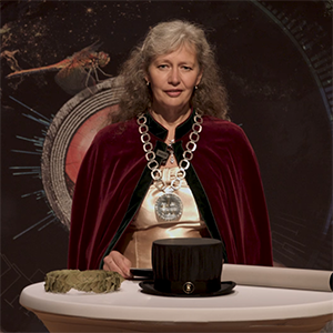 Filmning av SLU:s rektor Maria Knutson Wedel:s promoveringstal utan publik under pandemin.